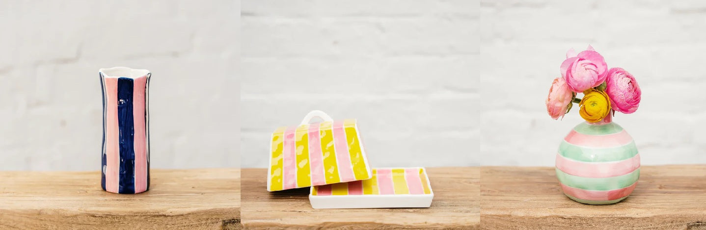 Butter Dish - Green & Pink Stripe